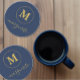 Den här personligen underlägg enkel, sofistikerad och elegant. Den har en marin blå bakgrund med ett guld monogram och manustypografi för din anpassning. Du kan anpassa färg efter eget val