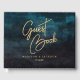 Solblått vatten och Guld Bröllop Monogram Gästböcker