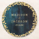 Solblått vatten och Guld Bröllop Monogram Underlägg Papper Rund