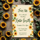 Ljusna upp ditt evenemang med denna glada, gula solblommeinbjudan! Vackra solblommor skapar en vacker ram runt den moderna, kalligrafiska texten och ger en söt men ändå sofistikerad look. En blekgul bakgrund drar allt samman till en ljus och glad inbjudan som gör den perfekt för baby-, bröllops-, brud- och födelsedagsfirande!
