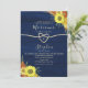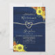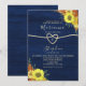 Antik botanisk rustik elegant marinblå trävig bröllopsinbjudan med enkel kalligrafi, falsk guldprägling rep hjärta och vackra solrosor. Det bästa valet för romantiska höstbröllop.