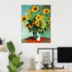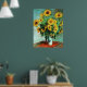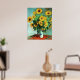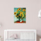 På dagarna kunde Claude Monet inte gå ut och måla, han stannade kvar och målade stillatigande. Han tog alltid entusiastiskt till sig utomhusmålningen och "plein-luft"-målningen för att studera ljusbytet utomhus. Men när han målade sina solblommor måste han ha fört in utomhusen eftersom de är fyllda med vindens energi och färg i utomhusets ljus. Det är inte känt om Van Gogh någonsin sett Monets "Sunblommor"-målning. Under en vecka hade Van Gogh målat fyra solrosmålningar med stor entusiasm. Van Gogh gillade att studera blommornas harmoni färg tillsammans med färger. Gult kan ha varit Van Goghs favoritprogram färg, eftersom det hjälpte honom att känna sig gladare och mindre deprimerad. Gaugin, en vän till Van Gogh, betraktade Van Goghs solblommor BÄTTRE än Claude Monets solblommor! Vi kanske kan bedöma det!