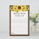 Solblommor, babyduschspel, råd till Mamma att vara och Önskemål för Baby, kan vara personlig med mamma först namn eller så kan det ändras till Råd till föräldrar att vara, med hjälp av par namn. De här roligtarna skapar en speciell nyckelroll. Klar på temat för solblommor för att matcha din tematiska babydusch. Observera att denna dubbla är sida vid sida med TVÅ SHOWER GAMES för PRISA AV EN.