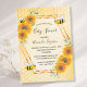 Elegant, inbjudan till roligtens babydusch, könsneutral. Gultens bakgrund med en gyllene bikaka mönster. Med faux guld geometric ram. Dekorerad gult, orange solblommor och lycklig humla. Med texten: Baby Shower och namn om ska mamman vara på framsidan skriven med ett modernt handskript i stil. Black brev. Tillbaka: gult vit bikaka mönster.