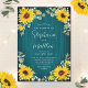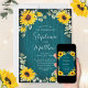 Dessa högfärgsbröllopsinbjudningar har en solrosdesign med baby utandblommor, eucalyptus löv och ljus på en tealträbakgrund. Anpassa dem med texten. Matchande produkter är tillgängliga.
