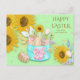 Solblommor Basket Glad påsk Eggs Namn Grönt Helg Vykort