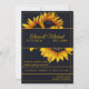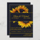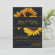 Lätt att anpassa den moderna bröllopsinbjudan med en sjudande, handmålad solblomma bouquet med trendigets kalligrafi och två mörkars marinblått och guldfärgat rand över en mörks midnattblå bakgrund. +++++++++ Lämpligt för blommigt sommar- eller höstfall, nattträdgård eller trädgård vid stil utanför bröllop firande och mottagningar.