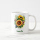 Det här objektet har en bukett med solblommor och grönt löv och utrymme för ditt namn.