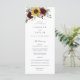Solblommor Burgundy Blommigt Rustic Bröllopsprogram. Blommigt Merlot Red Burgundy Bröllop serviceorder