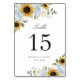 Solblommor Dusty Blue Blommigt Rustic Bordsnummer. Elegant Solblommor Greenery Bröllop Bordsnumren