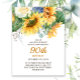 Vackra gulter solblommor och grönt lämnar 90:e födelsedagsfest inbjudan för kvinnor. Du kan anpassa texten på det här kortet för en födelsedagsfest för vilken ålder du vill fira.