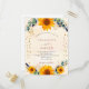 En gyllene vattenfärgad bakgrund som dekoreras med solblommor, eukalyptus greer, gyllene löv och hjärtan. Anpassa och lägg till information om namn och party.