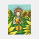 En flicka i en fält av solblommor på en varm sommareftermiddag.