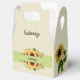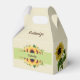 Den här snygga favoritlådan passar alla festila tillfälle och har ett grönt kalkband av solblommor. Den här designen finns på fram- och bakpanelerna. På sidan finns en enda solrosa.