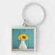 Solblommor i vas fyrkantig silverfärgad nyckelring