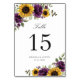 Solblommor Lila Blommigt Rustic Bordsnummer. Elegant Solblommor Violet Lilac Flowers Grey Bröllop Bordsnumren