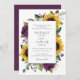 Solblommor Lila Greenery Blommigt Rustic Bröllop Inbjudningar