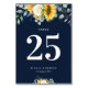 Solblommor, marinblått bröllop Bordsnummer