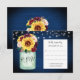 Svarskort från bröllop har en solrosliknande mason burk och vattenfärg och en blommigt på en marin blå träkornbakgrund med ljus. Anpassa korten med din egen text. De ingår i en samling i bröllop som omfattar matchande bröllop och möhippa, papper och gåvor. Besök vår affär för att se det sortiment av bröllop och möhippa i fullt som du kan anpassa för bröllop.