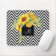 En rolig modern design med en svart och vit chevron zig-zag rand mönster med en blommigt monogram ram som är kantad av färgstarka gult vattenfärgade solblommor. Redigera provmonogrammet med din första anpassningsbar för en musknapp som är unik för dig.