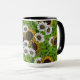 Handdragen vektor mönster med buketter av sunnblommor, daisy, kamomille och eukalyptus