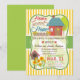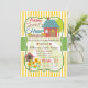 Färgfull, söt, hemsöt hem, inbjudan till husuppvärmningspartiet på återljus gult och vit rand mönster. Med skorsten och hjärtdörr, träd, betesstaket, blommor, solblommor och ett fågelhus. Färg omfattar gult, kalkgrön, röd, teal, rosa, brun, orange och vit. Välkomna dina vänner och din familj till ditt nya hem med detta söta inbjudan.