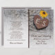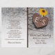Solblommor, metallkryddat hjärta med monogram på träceremonin i bröllop och party-vikta program som innehåller ett brunt, graderat metallhjärta med initialer innildat på den västra gråttet och tre gulters solblommor. Denna utformning av en blommigt med monogrammet bröllop är helt och hållet anpassade och ingår i en perfekt för uppsamling eller uppsamling i bröllop under en sommar eller en fall i land bröllop. Du måste lägga den i mitten. Välj endast den här typen av pappert värde när det viks väl.