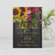 Mall för inbjudan till Rustic land möhippa snyggt på mörk brunladuvirbakgrund med stora solblommor i gult och röda burgundi-ro buketter, strängar av tvilling ljus och ett faux guld typografi-skript. +++++++++++++++ Enkel att anpassa med dina uppgifter! Du kan välja att anpassa det ytterligare genom att ändra typsnitt och färg på text. +++++++++++++ Inbjudan är lämplig för utomhusträdgård/trädgårdshård rustic land vintage brunch/barbecue brudens sida.