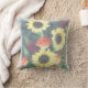 En arrangemang av tre solblommor och ett par rosor har fött en vacker kudde.