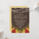 Rustic bröllopsinbjudan med blek gult mot en tryckt bakgrund av trälåda, dekorerad med solblommor och röd ros, vete, bär och grönt löv, och rader av ljus med glanskartad form. Baksidan har en varm gult gingham mönster. Denna roliga inbjudan är perfekt för sent sommar bröllop, fallbröllop, rustik bröllop, ladam bröllop och landsbyggsbröllop!
