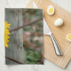 Meddela dina kommande nuptialer på ett unikt och ovanligt sätt med söt Rustic Sunwers och Wagon Wheel Land Westerna Bröllop spara datum Kitchen Towel. I den här avslappnaden finns en botanisk behålla i giftermål som är av botanisk anpassningsbar och där handduken har ett digitalt målat fotografi av blommigten av en bukett av blommar för solrosblommor i gult med en gammal vagnshjul och ett trästängsel. Perfekt för en informell ceremoni och mottagningsevenemang i stil lada party giftermål.