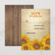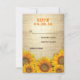Svarskort för det roustiska landsbyggsbröllopet med solrosprodukter och blommar för struktur som är täckt av brännskador.