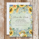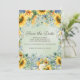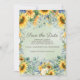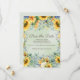Elegant gult solblommor och sage grönt eucalyptus löv kort för bröllop spara datum, personlig med namnen av bruden och brudgummen och deras planerade datum och plats för bröllop.
