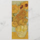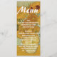 En vacker smala-meny bröllop bord, med bild av Vincent van Gough-målningen Solblommor, som bakgrund. Anpassa all text till kostym ditt behov av bröllopsmottagning.