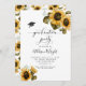 Mall för inbjudan till blommigt av elegant med studentfest med vattenfärgstryck som illustrerar solrosor av gult med baby utandning. Det finns också en illustration av en studentmössa. Du kan lägga till student-fotot på baksidan av kortet. Underbar för både high school och College student.