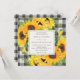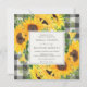Bröllopsinbjudan med akvarellsolrosor och klassisk buffeloxrutig bakgrund. Dessa trendiga inbjudningar är perfekta för en rustik bröllopsfest eller höstbröllopsfest. Anpassa med din information för bruden att vara. Klicka på "klicka för att anpassa ytterligare" för att ändra typsnitt, storlek eller färg.