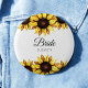 Solbrud Bröllopsknappar med blomstermålade gula solrosor och egen text på vit bakgrund.Du kan använda dessa för brudtillbehör, middag den dagen före bröllopet, dubbelbröllopsfest, förlovning och bröllopsfest. Använd anpassa denna mall alternativet för att ändra texten | Använd anpassa ytterligare alternativet för att ändra textstil och färg om det behövs. Denna produkt är en del av en samling; kontrollera därför vår butikssamling för matchande artiklar.