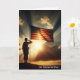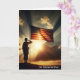 En siluett av en soldat som gör honnör för en amerikansk flagga med dramatiska solstrålar.