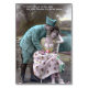 Ett offentligt vykort i vintagens Fransk med en soldat som kysser en kvinna. Det skulle vara en underbar gåva till Valentindagen, Sweetest Day, anniversaries.