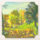 måla vattenfärg på silke - manuellt teckning. Artist av Zolotareva. Höstgolden. Fantastisk scenery.Varmsoljor gör vägen genom ekens löv.