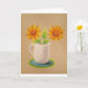 Glad illustration av solrosor i en lantlig vas. Perfekt för Alla hjärtans dag, Mors dag eller bara för att skicka soliga hälsningar!