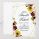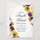 Designen har en vacker halvkrans av akvarell solfjäder, peon och rosblomster i olika nyanser av rosé, gurgunderröd, Marsala/plommon med mera över målad grönska.