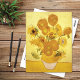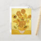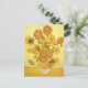 Ett vykort med den post-impressionistiska målningen, Vas med femton solrosor (1888) av den holländska konstnären Vincent Van Gogh (1853-1890). Detta konstverk skildrar en vas med gula blommor mot en gyllene bakgrund. Van Gogh skapade många versioner av solros-målningar.