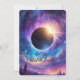 Förhöj upplevelsen av att se solförmörkelse med denna färgrika kosmiska himmel-solförmörkelse-inbjudan till visningsfest. Bilden visar lila virvlande moln och en mystisk stjärnhimmel som framhäver en fantastisk bild av solförmörkelsen. Du kan ändra texten till ditt eget personliga meddelande. Perfekt för grupper, organisationer och familjesammanträffar. Och glöm inte matchande t-shirts, knappar och tillbehör i min Eclipse-kollektion.