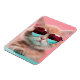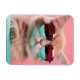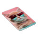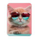 Anpassningsbar magnet med orange katt som använder sig av vakuumsolglasögon med rosa bakgrund.