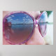 En poster som visar solglasen med reflektionerna himlar och vatten