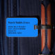 Bagagetagg med namn och adress på en fast azurblått färg. Anpassa med namn och adress-information med hjälp av de enkla mallarna. Teckensnitt färg, stil och storlekt teckensnitt är anpassade.