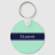 Solid Light Mint, Navy Blue Ribbon Namn Monogram Nyckelring