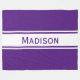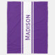 Den här designen har en heltäckande färg för lila av royal med vit rand och ett modernt teckensnitt. Anpassa namn med mallen fält.