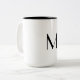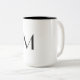 Two-Tone Coffee Mug with classic solid white background and black lettering in the center .Simple design with strict look by Alma Wad .Personalize it with your monogram now .ideal for minimalists, writers, and office use, perfect for those who appreciate clean design, clear thoughts, and purposeful coffee moments.